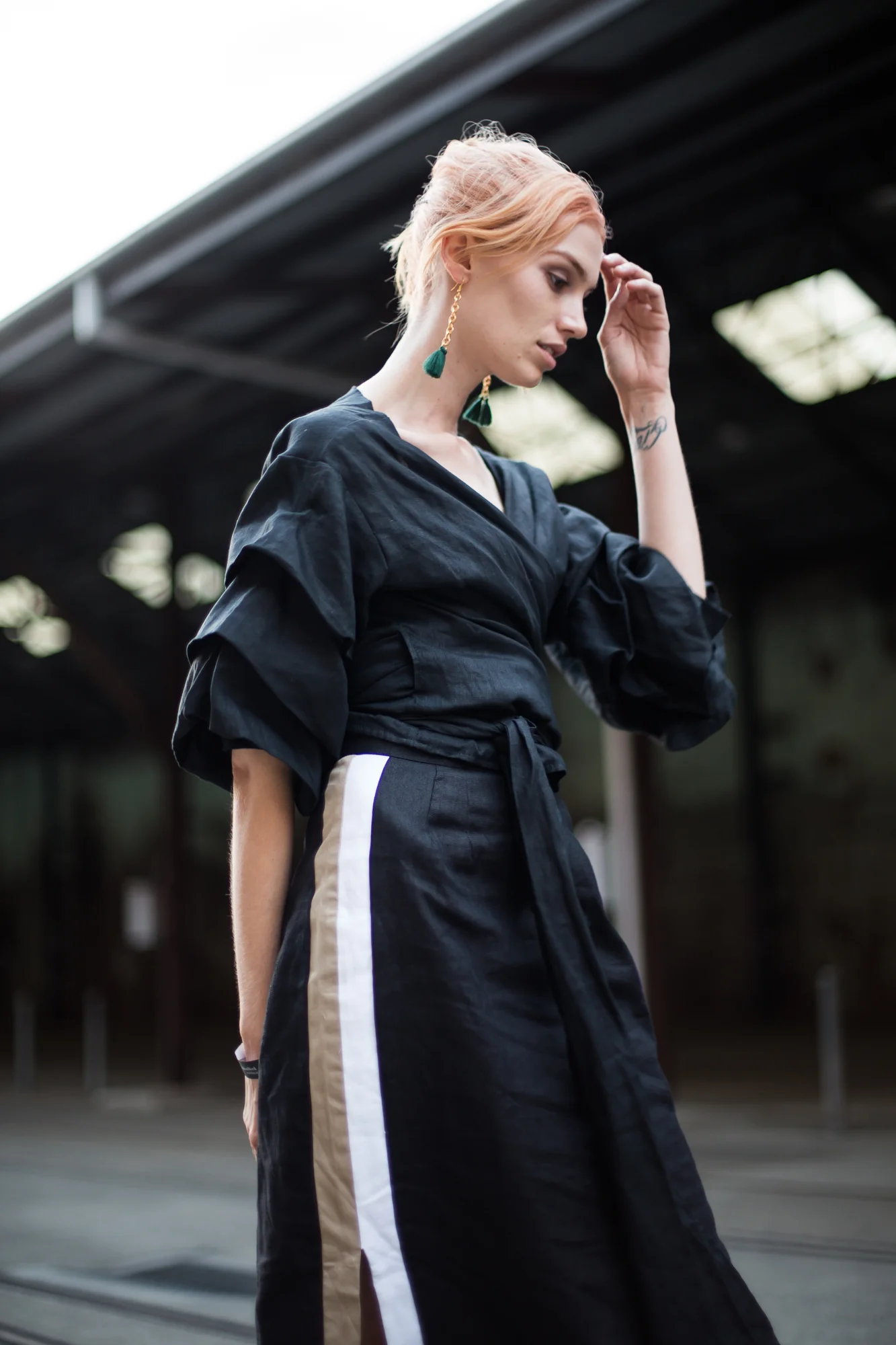 The most recent collection focuses on monochromatic shades and colour blocking, with oriental persuasions used throughout the cuts of garments. I wore this look to the Akira show - so perfect! How glorious is the sleeve teiring?!!?!